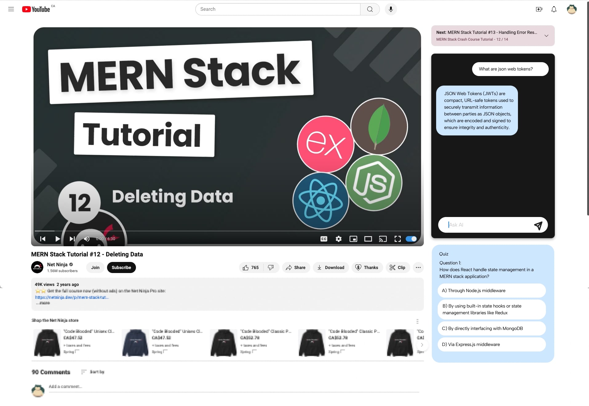 • A fully functional browser extension integrating AI-driven features like Q&A and quizzes.